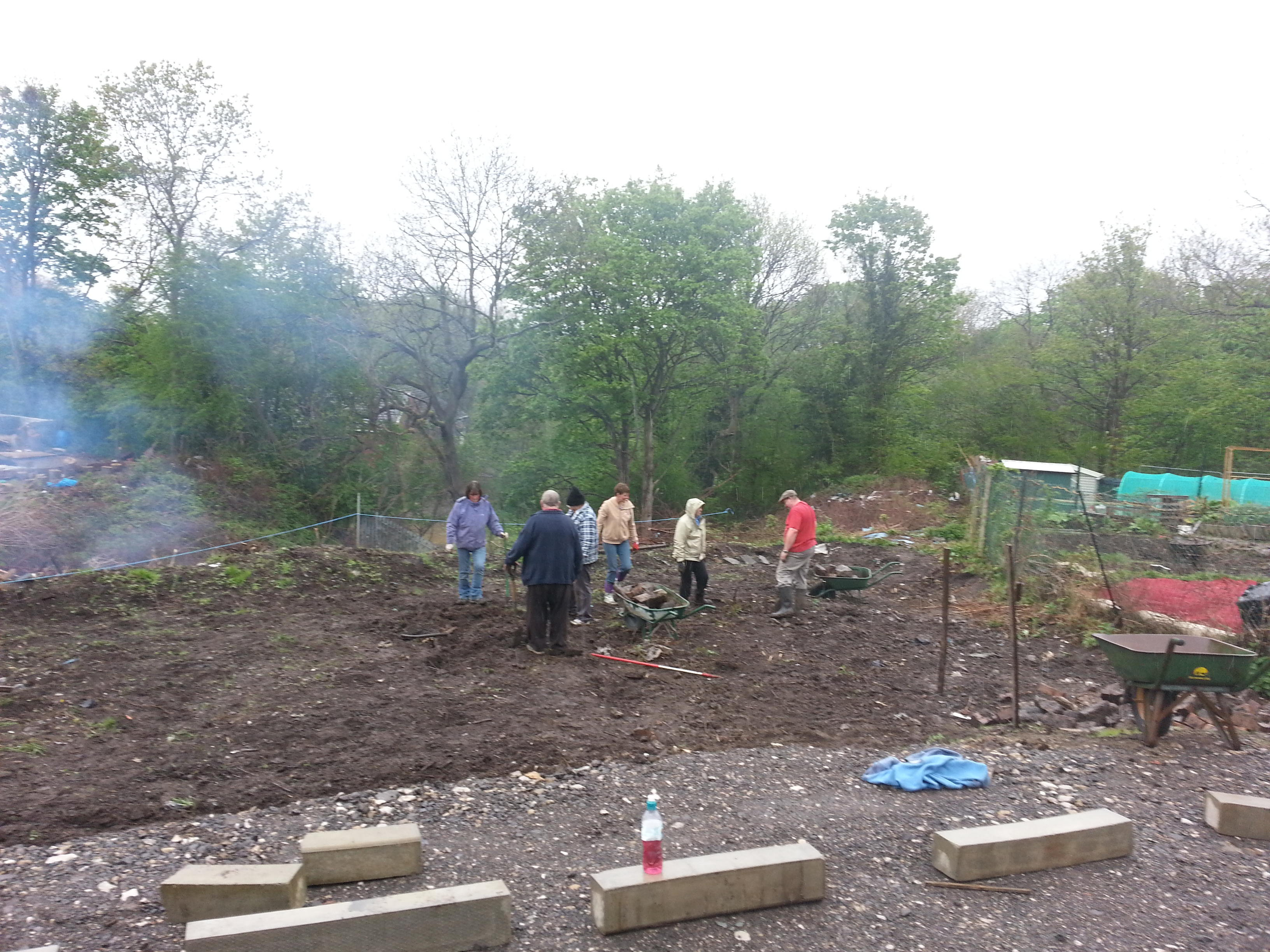 It is with thanks to allotment members and committee who came together to start the project at the beginning of February 2016 to remove overgrowth and trees to expose the underlying terrain. Several tonnes of rubbish were also removed in the process. Once cleared, work was undertaken to turn over the existing soil and again in the process remove unwanted rubbish. This work has enabled us to establish new plots and space for the Alvanley Clinic project. Also due to the poor state of the gate and entrance at the Woodlands drive entrance Stockport Metropolitan Borough Council installed a new gate. New plot members are now in situ and are seeing the fruits of their labours annually. 2019 has seen the continuation of improvements to this area with the supply of a large quantity of flags from a local civil engineering company. These flags are currently being laid for new paths by allotment members.