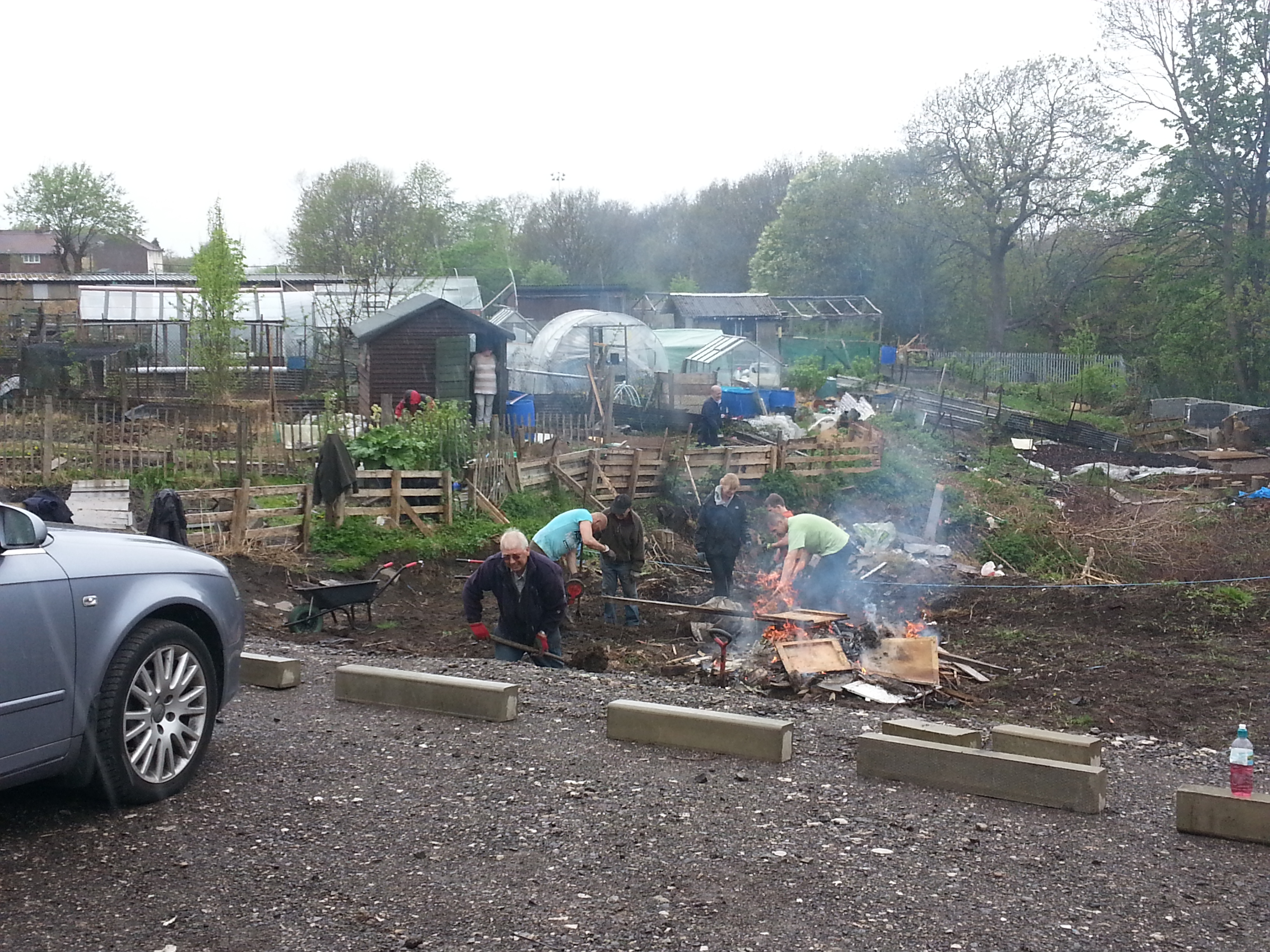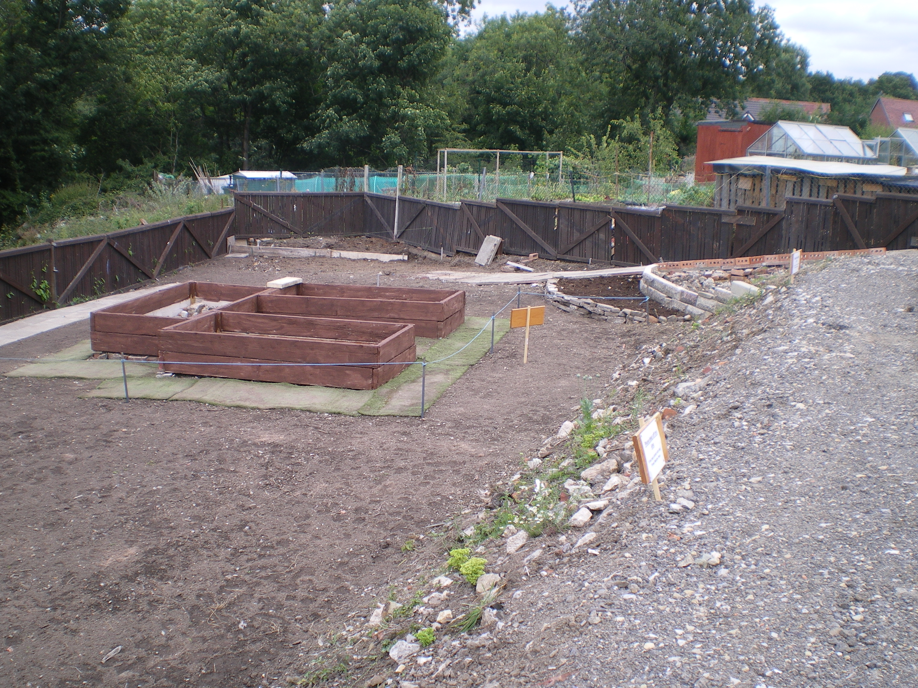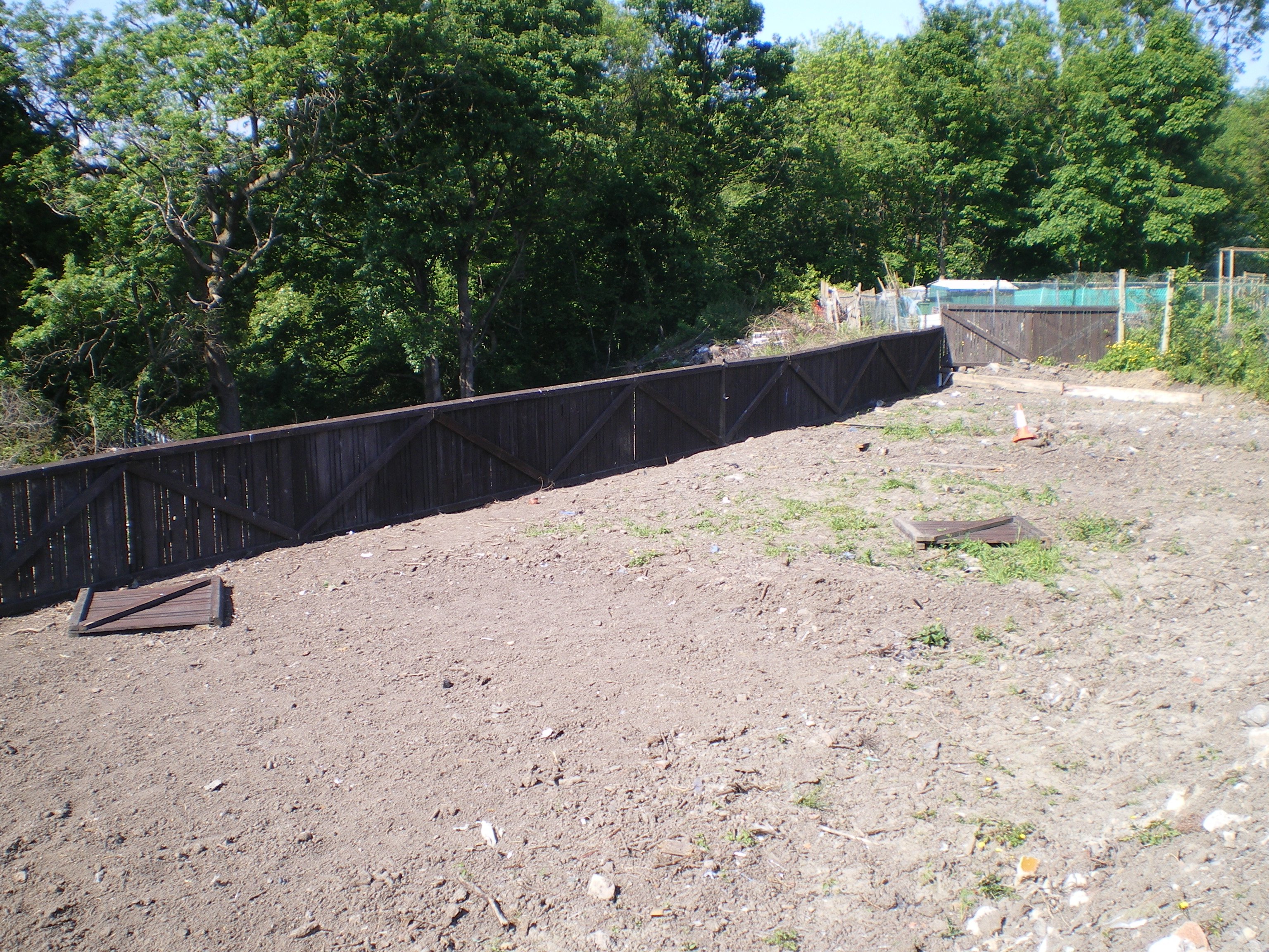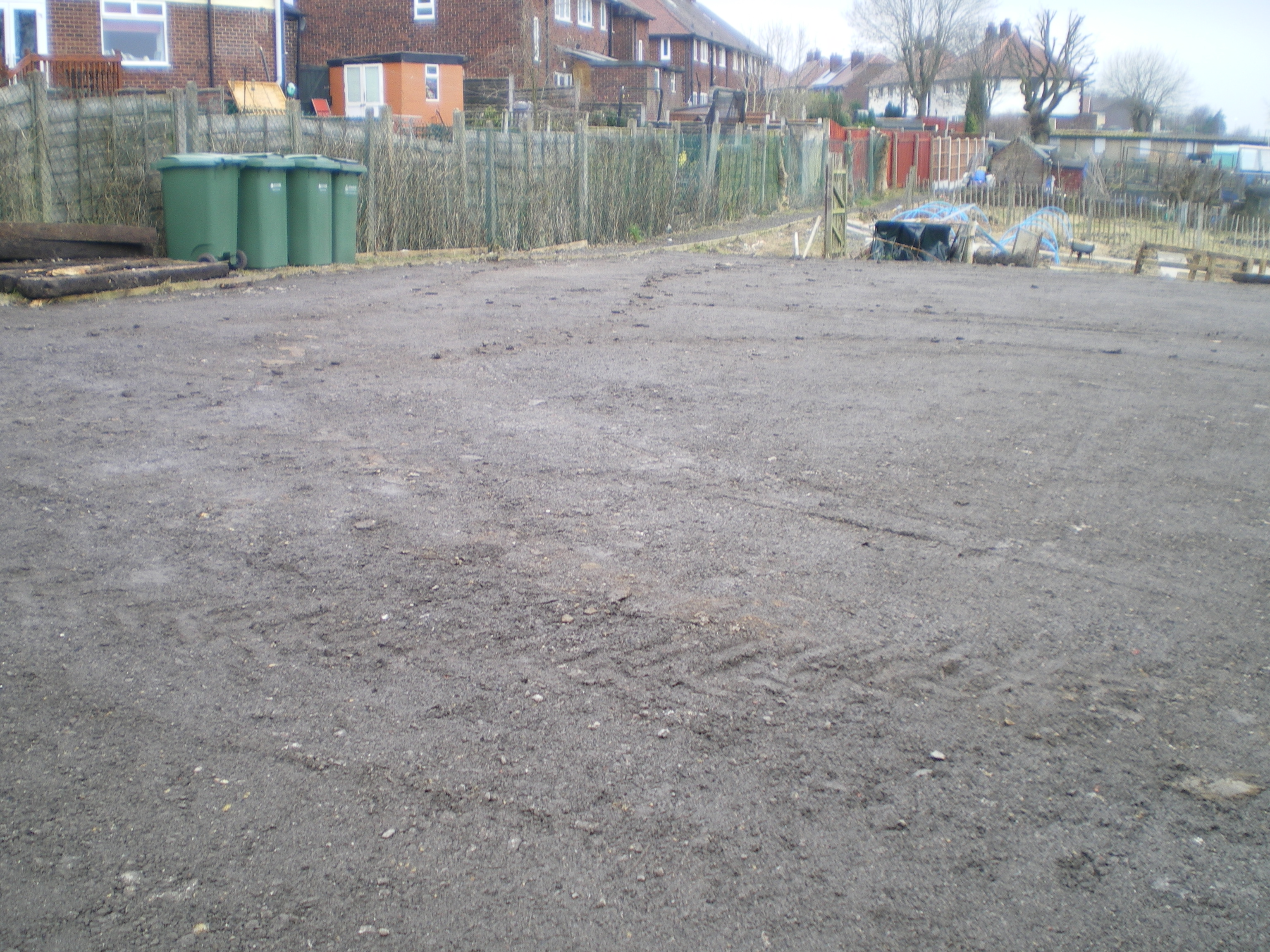On taking control of the allotment site the Associations Committee undertook a full review of the site developing a Regeneration Plan. This established a programme of work (reinstating the access paths round the site, tidying up the area, cutting down and removing trees/weeds/brambles, extending the site water system and a number of major projects) to steadily make improvements over a period of time to the allotment site. Two of the projects were to restore the main entrance and car park and create Community Green Space Area for the members and visitors.