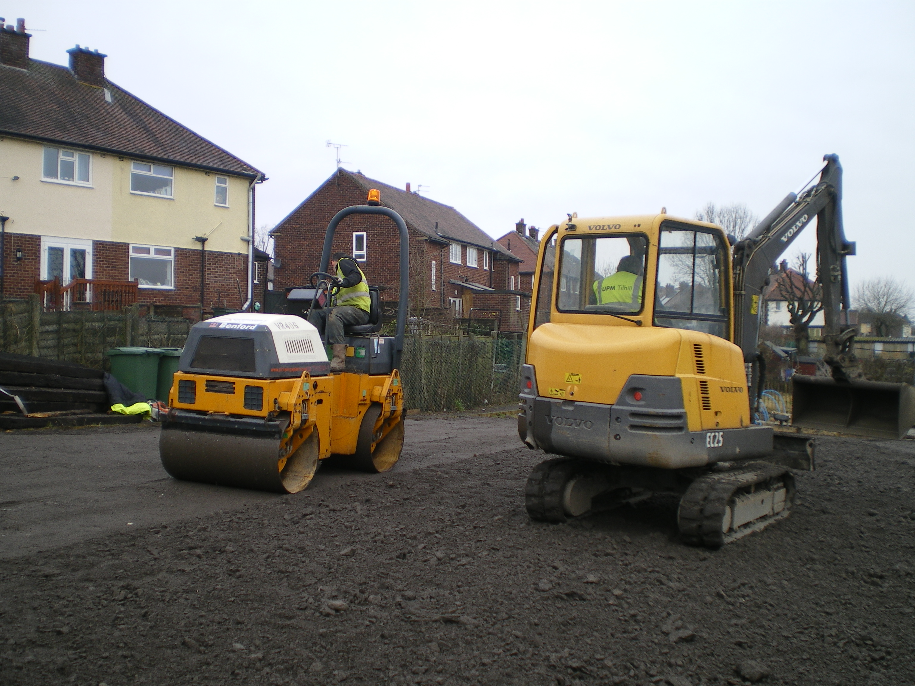 To give you indication of the work involved the materials used; after the area was cleared and the levels established 180 tonnes of crunched brick were delivered and rolled this was followed by 140 tonnes of hard core and to finish 40 tonnes of road plannings.