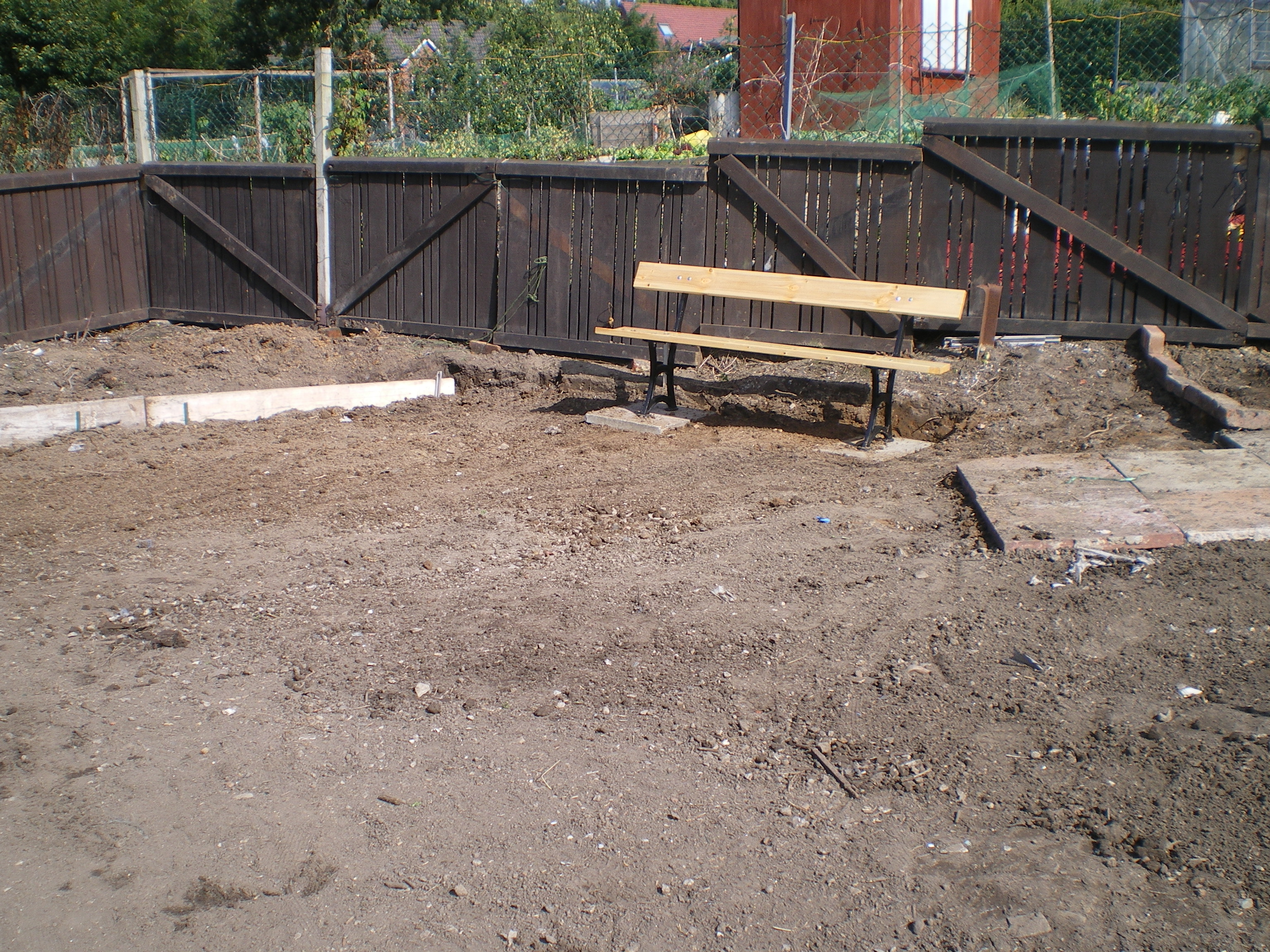 With the completion of the car park the committee turned its attention to the Community Green Space. With donation from Mr Palmer of 150ft of wooden fencing, 40 off 3×2 concrete flags and a number of road kerb blocks. To purchase further materials to construct this area we were also fortunate to obtain a grant from the Area Flexibility Grant Fund. With the funding in place along with the donations from Association members the work started on the Community Green Space Area.