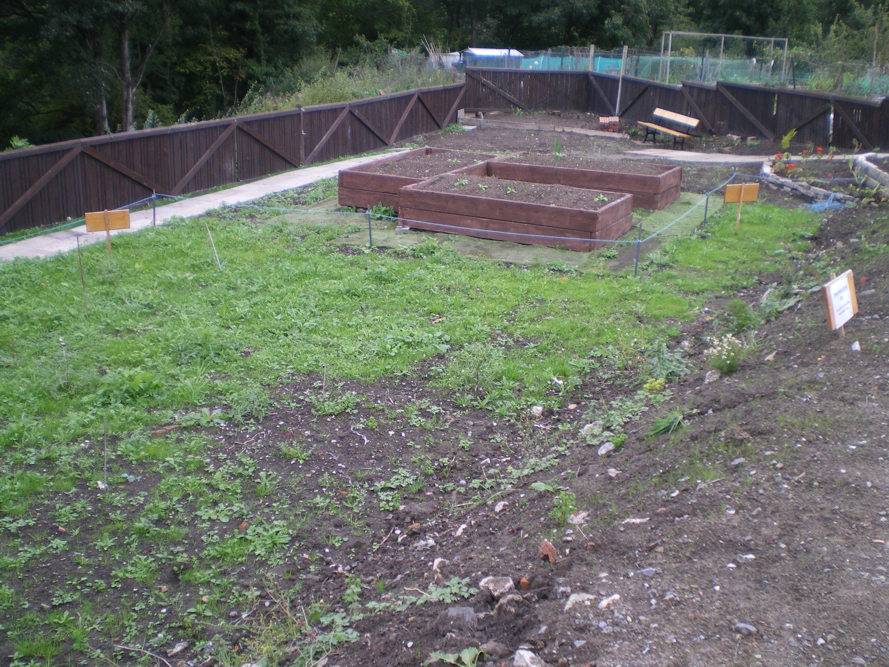The work on the area commenced in April 2013 and was completed in October 2013 and all the work was completed by Associations members. The area is fenced off at the top of the Dell (a safety requirement) and down each side of the area, there are three raised beds that have been allocated to plot holders children to cultivate, a wild flower meadow with six fruit trees, an access ramp, with flower beds on each side and at the bottom, flagged paths round the area and we have planted 500 spring flowering bulbs.