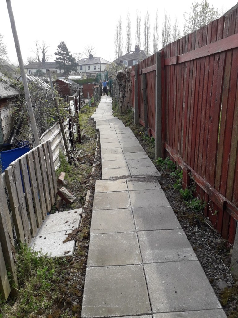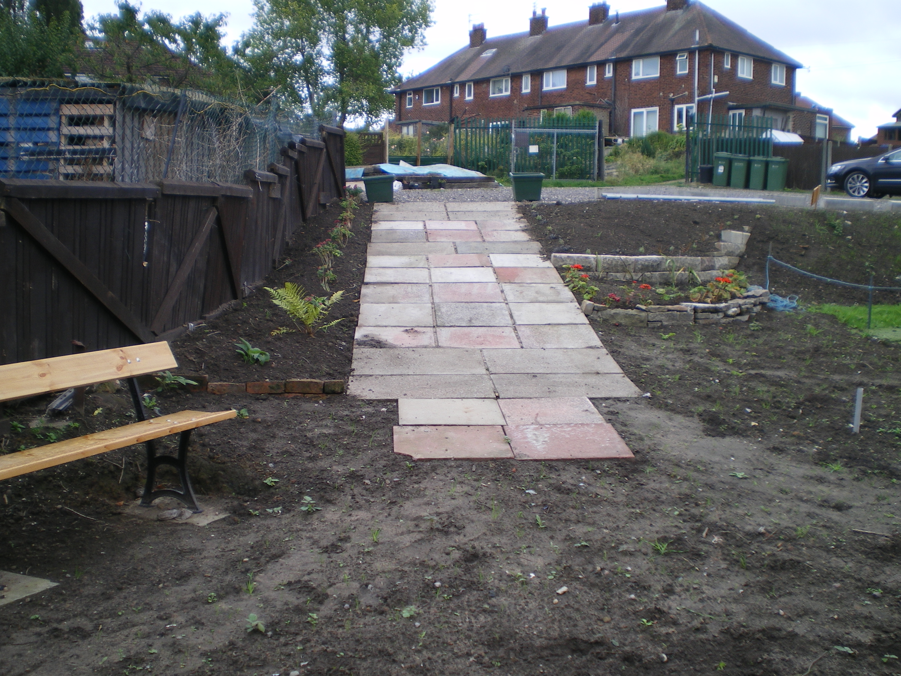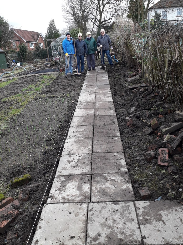 One thing quite often leads to another and this is certainly true in this case. Continuing from the work Civil Engineering firm George Cox have done for the Alvanley Clinic the association was asked if we would like some flags. The paths on our allotment site were in desperate need of attention and with this in mind we accepted them with delight. What we were completely unaware of at the time is the number in which we were being offered and i believe the last count was somewhere close to 1000 flags. Again thanks to the help of committee members and plot holders work began on the paths in February with completion at the end of May. We would like to say a huge thank you to George Cox for making this project happen. In the process we have also managed to extend the life of the used flags which we believe would have ended up in land fill or would have needed to be recycled, so in reality everyone really is a winner.