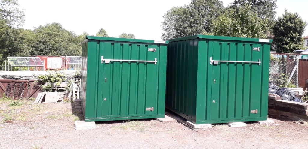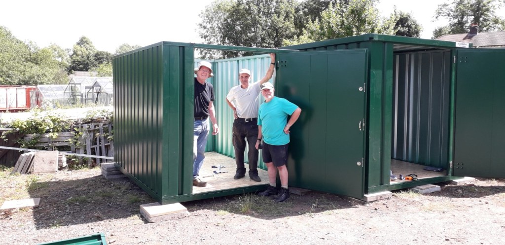 A busy 6 months for the committee and allotment holders. An application was made to the Manchester Airport Community Trust Fund. I think most of us did not hold much hope of a successful application however with much delight we gained funding with a little contribution from the association to buy 2 x 3m x 4m shipping containers. There was certainly quite a bit of excitement over receiving delivery of these flat pack containers. The original plan was to move them off the road down to the allotments and then rally allotment members to come down a week later to put the units together. The units arrived Thursday (28/06) evening where they were moved on to the car park and a good number of allotment holders came down the following morning with socket sets in hand to construct them. Three hours later the project was more or less completed!